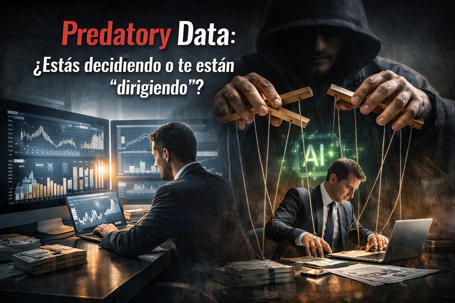 En palabras sencillas los datos predatorios (del inglés “predatory data”) son datos que influyen en las decisiones a favor de un tercero, explotando sesgos humanos o debilidades en la operación. Aportan en principio la objetividad que se busca, pero a la vez condicionan las conclusiones. En otras palabras, son datos útiles, pero a la vez dirigen las decisiones.